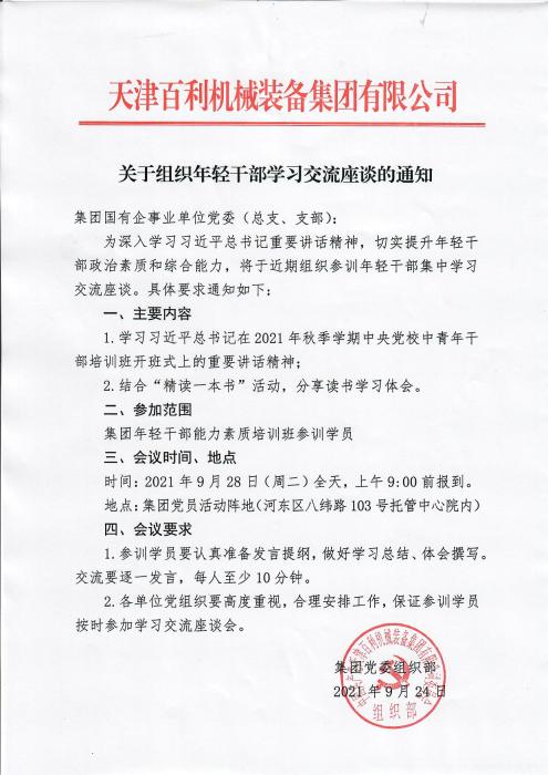 关于组织年轻干部学习交流座谈的通知