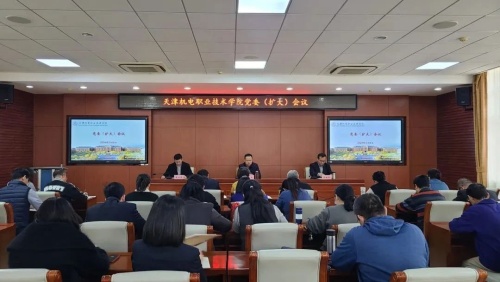 12月6日,天津机电职业技术学院(以下简称“机电学院”)党委召开扩大会议,传达学习全市教育大会精神,研究部署学习宣传贯彻措施。机电学院党委书记王新主持会议并讲话,党委副书记、校长王维园领学会议精神,班子成员和全体中层干部参加会议。
