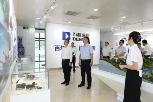 会谈前,张江山一行参观了百利装备集团展厅,详细了解百利装备集团发展历程、产业布局、科技创新、合资合作等情况。